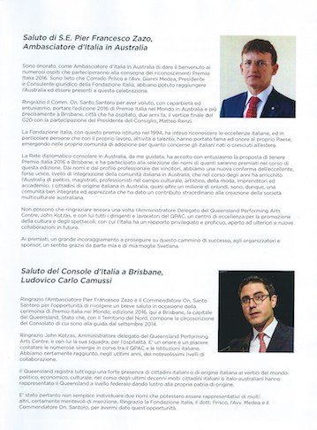 Catalogo della XVII edizione del Premio ITALIA nel Mondo, BRISBANE 2016