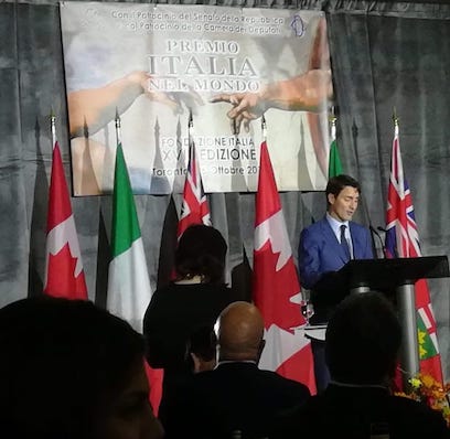 Il discorso di Justin Trudeau alla XVIII edizione del Premio Italia nel Mondo: il saluto a Corrado Prisco, il grande apporto degli italiani allo sviluppo del Canada, e il ricordo di Sergio Marchionne.