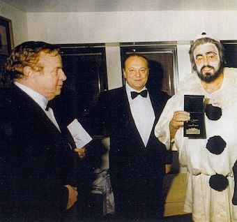 Franco Zeffirelli e Luciano Pavarotti premiati a New York , col Premio Italia nel Mondo. Al centro nella foto Corrado Prisco presidente di Fondazione Italia.