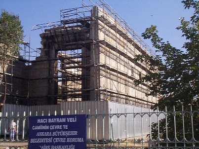 All’inizio del VI secolo, il tempio romano fu trasformato in chiesa. Verso la metà del XV secolo, i fedeli di Haci Bayram Veli, una delle grandi figure della confraternita dei Dervisci, costruirono in suo onore una piccola moschea con il minareto, in aderenza all’antico tempio. Successivamente rimaneggiata, la moschea continua ad essere un luogo sacro per la collettività islamica. La Moschea e il Mausoleo di Haci Bayram costituiscono ancor oggi uno dei centri religiosi più importanti della capitale, mentre il monumento romano è andato in rovina. Testimoni della grandezza passata rimangono i suoi ruderi, alti quasi 12 metri e lunghi 32,50.