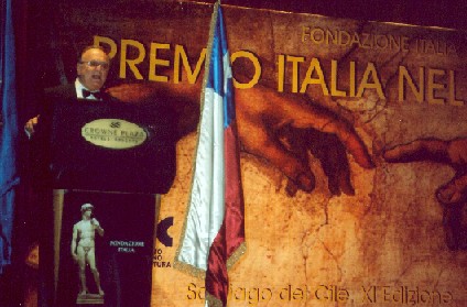 Nella foto in alto: l’Ambasciatore d’Italia in Cile, dott. Paolo Casardi, consegna il Premio Italia nel Mondo al prof. Humberto GIANNINI, Premio Nazionale delle Scienze